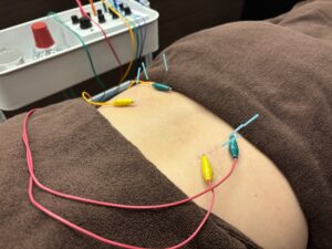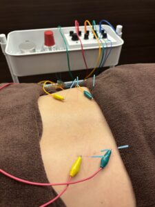 鍼通電とは、鍼に低周波を流しながら行う治療法です。患部の筋肉に電気を流し、連続的な収縮・弛緩運動を促し、より効果的に筋肉にアプローチができます。慢性的なコリや、神経症状として現れるような痛みや痺れに対する鎮痛効果も期待できます。 (個人差はございます)