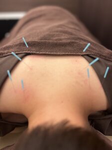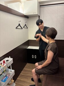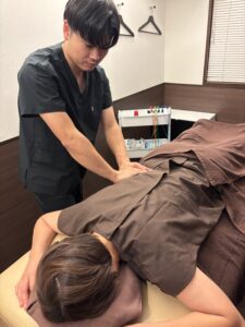 ■触診をしながら、鍼とマッサージを組み合わせて奥深くの筋肉を丁寧にほぐしていきます。
